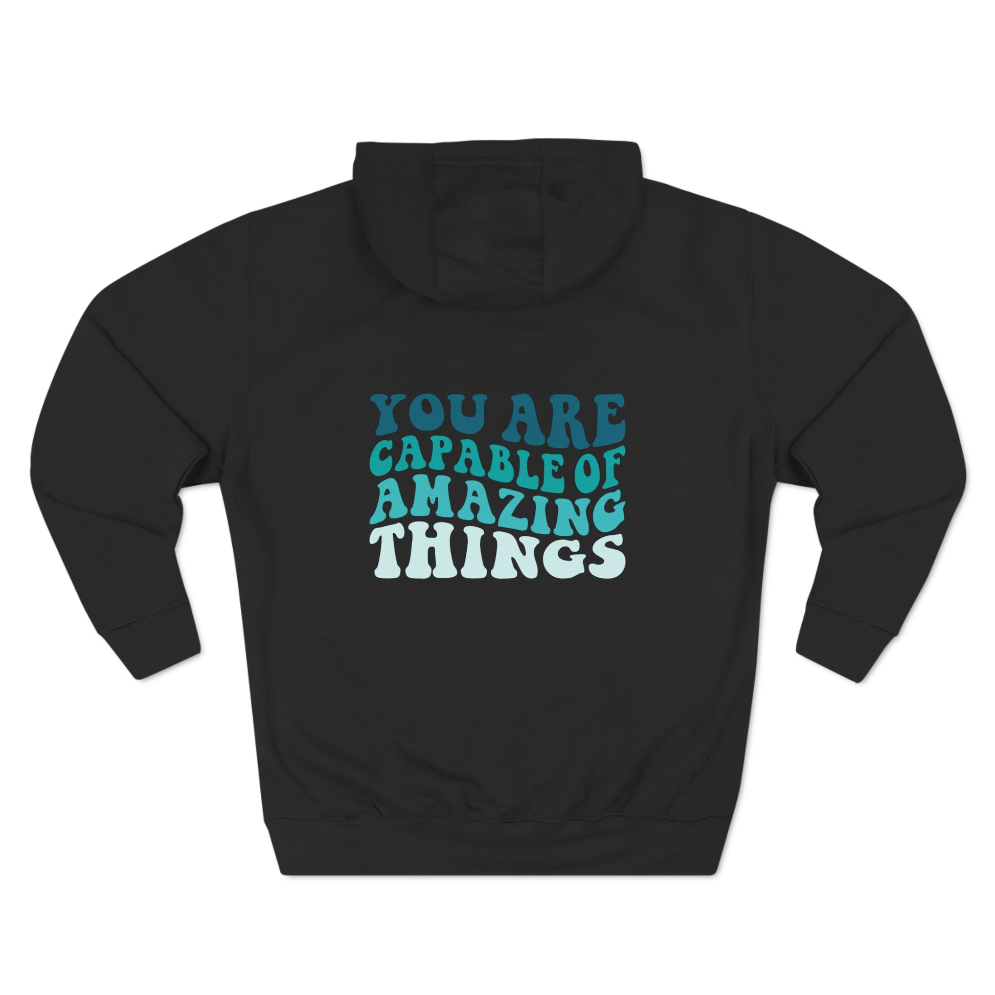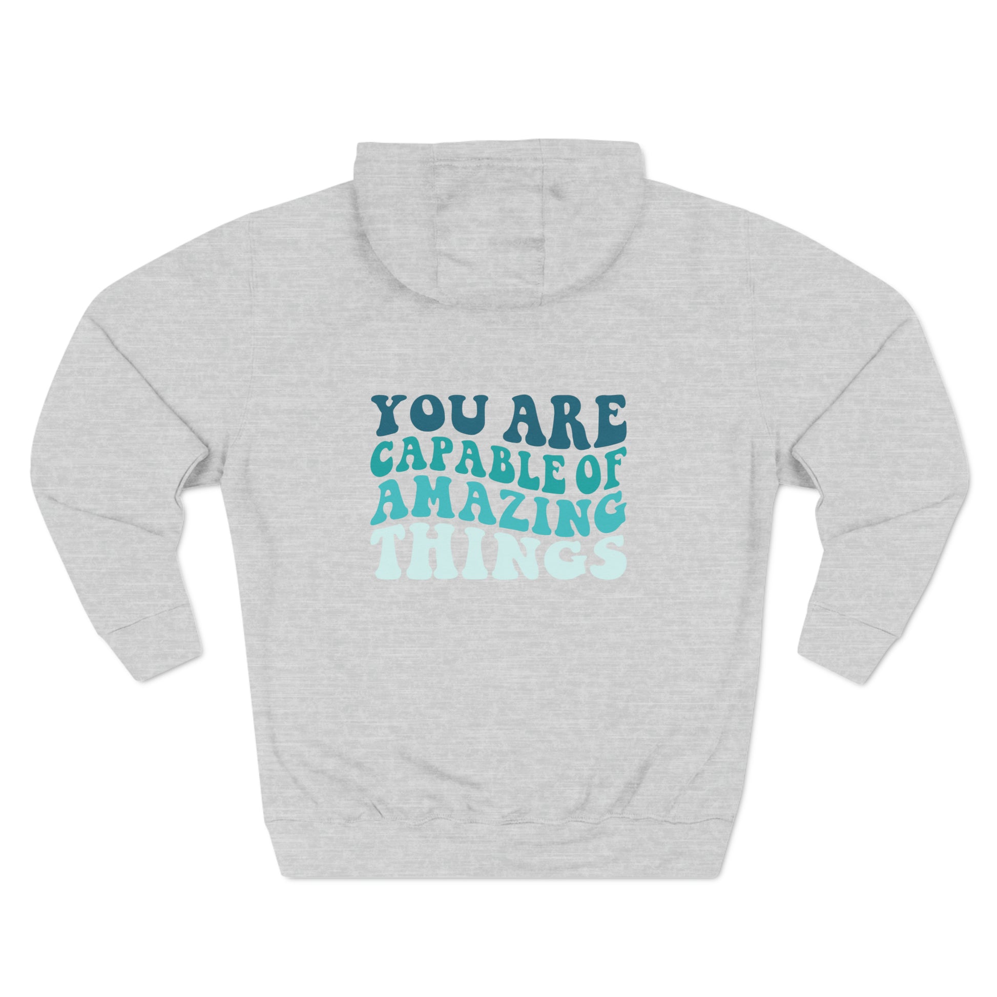 Discover the epitome of comfort and style with our Unisex Three-Panel Fleece Hooded Sweatshirt, a cozy sanctuary that whispers that you are capable of amazing things. Crafted from a thick blend of 80% combed ring-spun cotton and 20% polyester medium-heavy fabric, this hoodie ensures a plush, soft, and warm embrace, making it your perfect companion on chilly days.